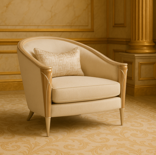 Rail, armrests and feet are finished in Chardonnay