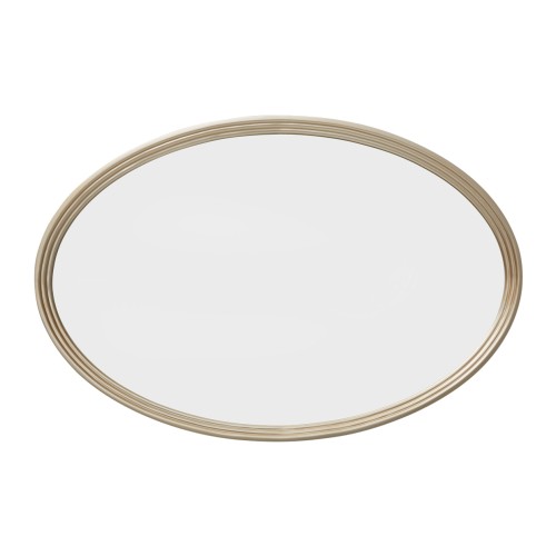 Mirror is oval with a Chardonnay finished frame, and mounts on the wall