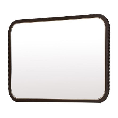 Mirror framed in espresso reeding with gold trim