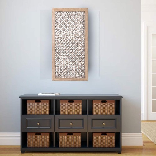 The amount of time and technic required to make this décor was tremendous. It started with the selection of tree barks. The size, kind, color, all matters. Then our in-house craftsmen bathed them inside spring water, boiled them for 48 hours then rinse it under running water to clear out all the impurities. After that, they shape all the “papers” by hand into a specific design. With hours of sun-drying to get rid of all the moisture, the paper mache centerpiece will be smoked using natural wood to add color and an aging effect. The end result is a marvelous wall décor with unparallel texture. A reflective layer was applied to add a special visual effect. We take pride in our relentless commitment toward handmade home decors, a rare presence in the world of mass production.