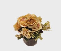Yellow Rose Flower In Brown Vase Ceramic (medium Size)
